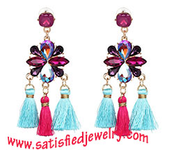 Material: Tassel + alloy parts Color: cream / fuchsia / blue Size: 9x3cm Weight: 24g MOQ: 120pairs/color Delivery time: one week