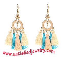 Material: Tassel + alloy parts Color: black / multi / cream / green Size: 8x3cm Weight: 12g MOQ: 120pairs/color Delivery time: one week