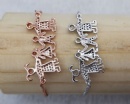 Material: Brass with real gold plated, with cubic zircon Color: Gold plated, Rose gold plated, Black color, Rhodium plated Size: 33.5x15.6mm Weight: 4.9g MOQ: 50PCS each color Delivery time: one week