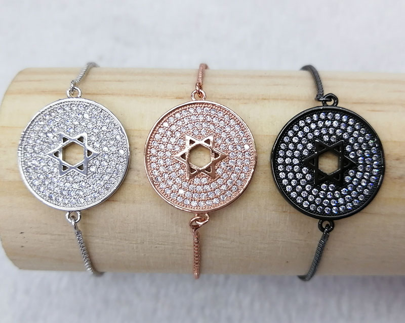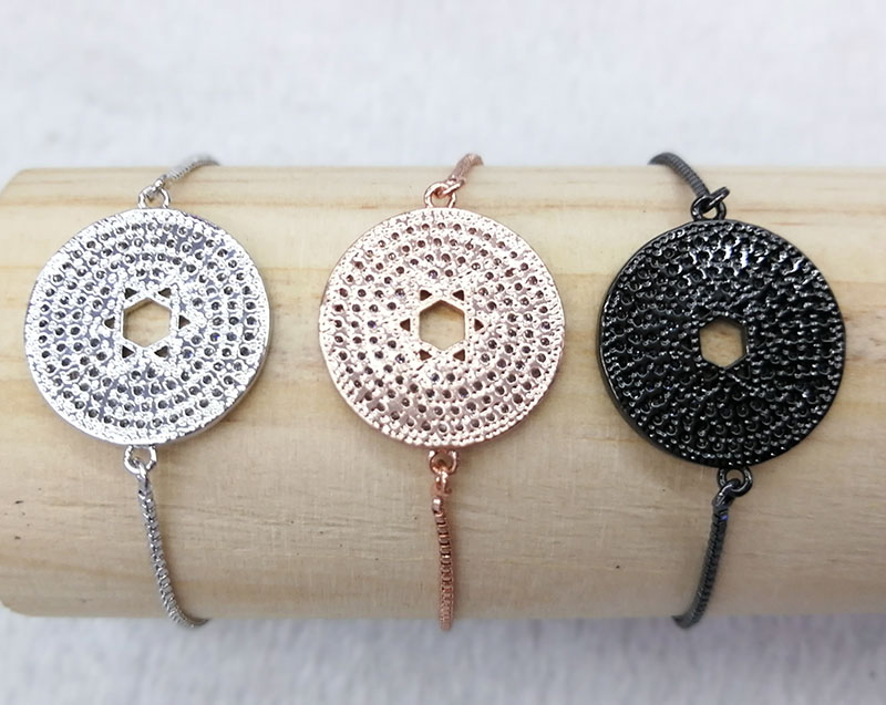 Material: Brass with real gold plated, with cubic zircon Color: Gold plated, Rose gold plated, Black color, Rhodium plated Size: 20x24.6mm Weight: 4.9g MOQ: 50PCS each color Delivery time: one week
