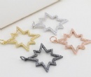 Material: Brass with real gold plated, with AAA cubic zircon and very very good quality Color: Gold plated, Rose gold plated, Black color, Rhodium plated Size: 31X37MM MOQ: 20PCS each color Delivery time: one week Color no fading for more than 6 month |