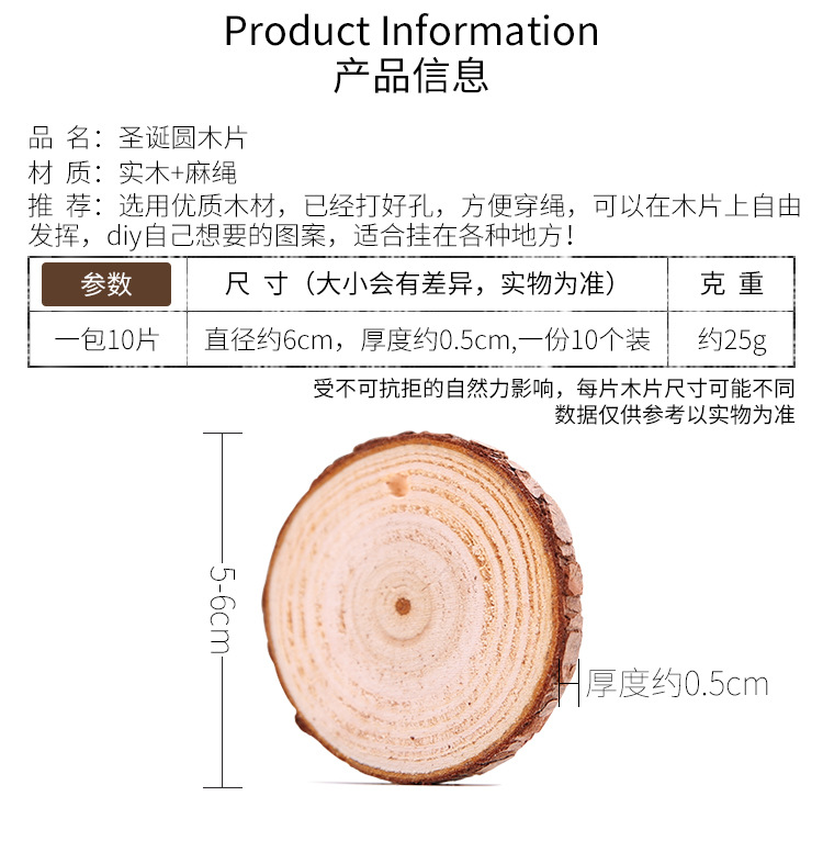 Material: wood Color: wood natural color Size: 6x0.5cm MOQ: 60packs, one pack with 10pcs Delivery time: one week
