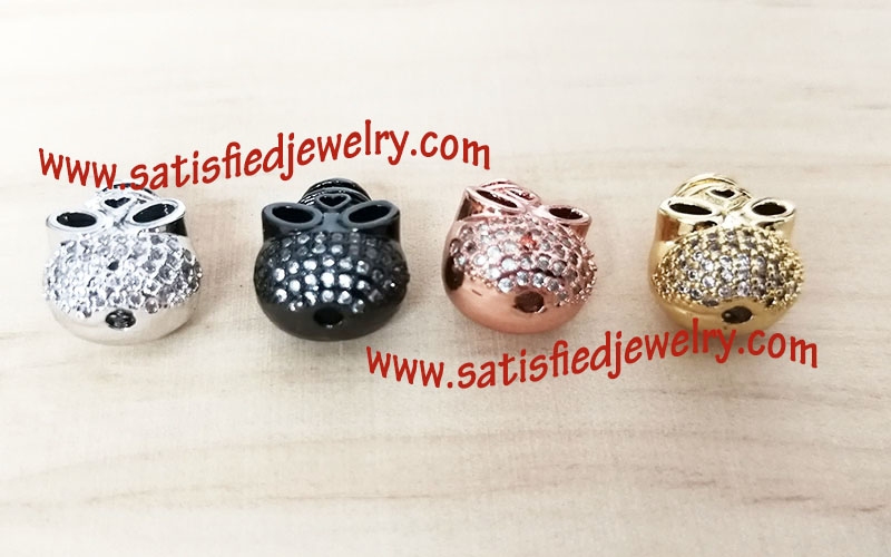 Material: Brass material with real gold plated, with cubic zircon Color: Gold plated, Rose gold plated, Black color, Rhodium plated Size: 12x10.5mm, the hole in the head inside diameter is 1.2mm Weight: 2g/piece MOQ: 50PCS each color Delivery time: one week