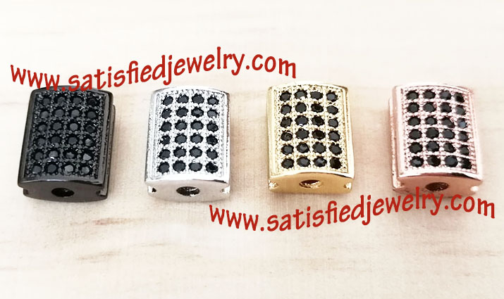 Material: Brass material with real gold plated, with cubic zircon Color: Gold plated, Rose gold plated, Black color, Rhodium plated Size: 11.1x8.6mm, the hole inside diameter is 2mm Weight: 1.7g/piece MOQ: 50PCS each color Delivery time: one week