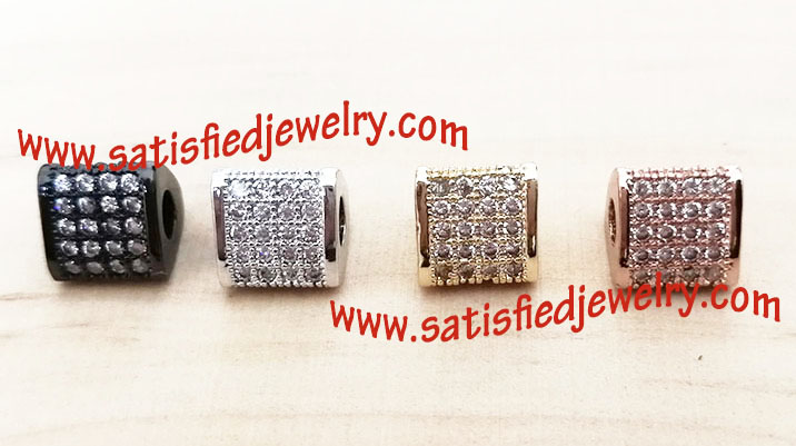 Material: Brass material with real gold plated, with cubic zircon Color: Gold plated, Rose gold plated, Black color, Rhodium plated Size: 8.3x8.3mm, the hole inside diameter is 3.2mm Weight: 1.6g/piece MOQ: 50PCS each color Delivery time: one week