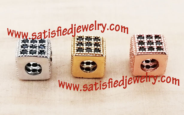 Material: Brass material with real gold plated, with cubic zircon Color: Gold plated, Rose gold plated, Black color, Rhodium plated Size: 5.8x5.8x5mm, the hole inside diameter is 2.6mm Weight: 0.7g/piece MOQ: 50PCS each color Delivery time: one week