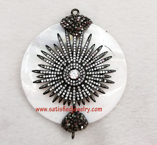 Material: Real shell with brass part with cubic zircons Size: 61x49mm Weight: 24.3g Insect size: 38mm MOQ: 20PCS Delivery time: one week