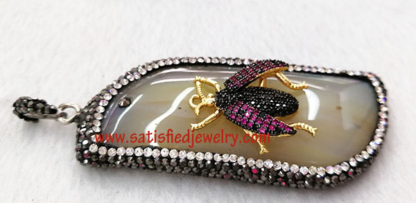 Material: Real gemstone with insect with cubic zircons Size: 71x29.5mm Insect size: 24x22mm Weight: 25.6g MOQ: 20PCS Delivery time: one week
