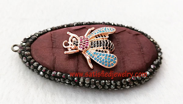 Material: Real leather with insect with cubic zircons Size: 68x37.5mm Insect size: 23x23.5mm Weight: 13.5g MOQ: 20PCS Delivery time: one week