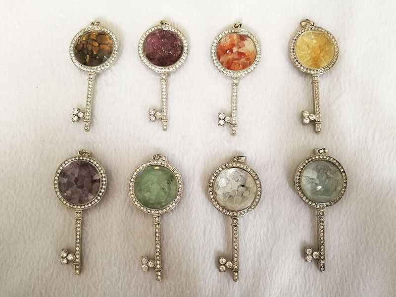 Material: Brass + Semiprecious stone chips Color: as show in the color card below Size: 73x32.2x12.5mm MOQ: 100pcs/color Delivery time: one week