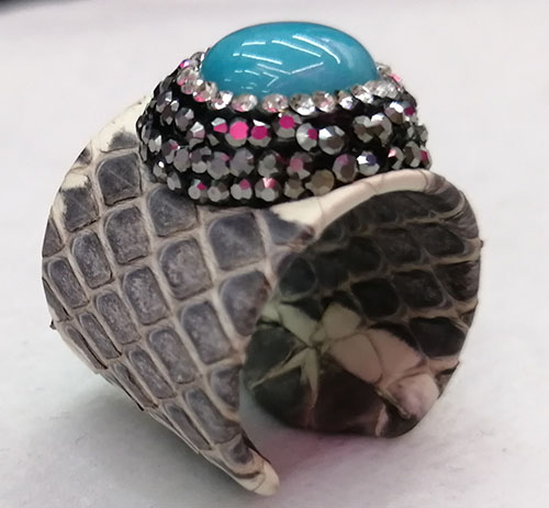 Material: Real leather with real turquoise and crystal stone around MOQ: 30PCS/color Delivery time: one week