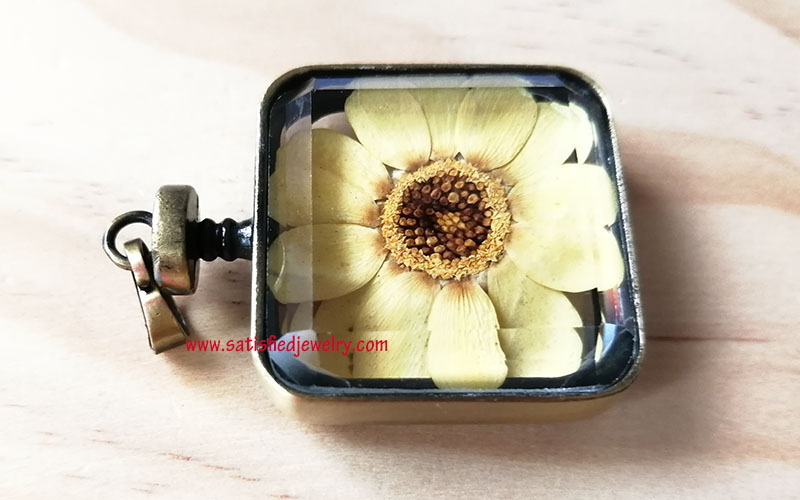 Material: Brass + glass + real flower Color: as show in the color card below Size: 42.3x30x12.6mm MOQ: 100pcs multi color Delivery time: one week