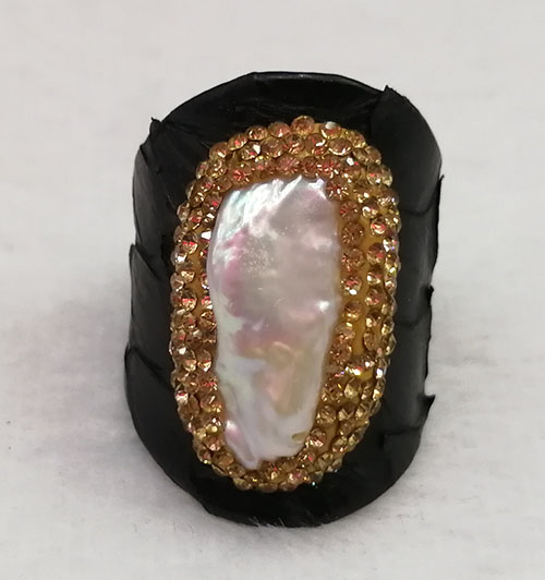 Material: Real leather with real pearl and crystal stone around MOQ: 30PCS/color Delivery time: one week