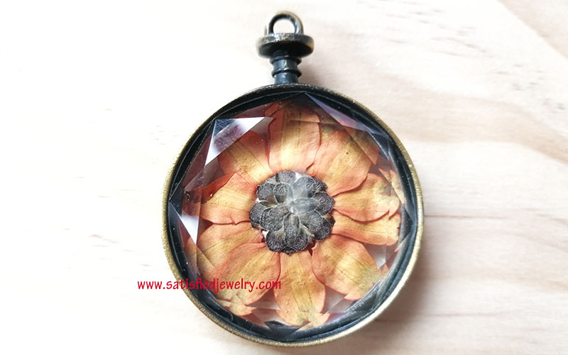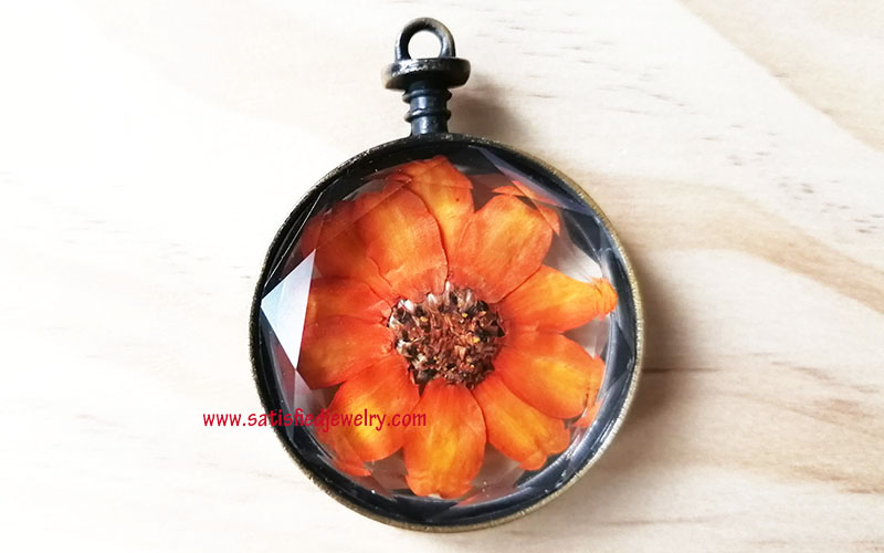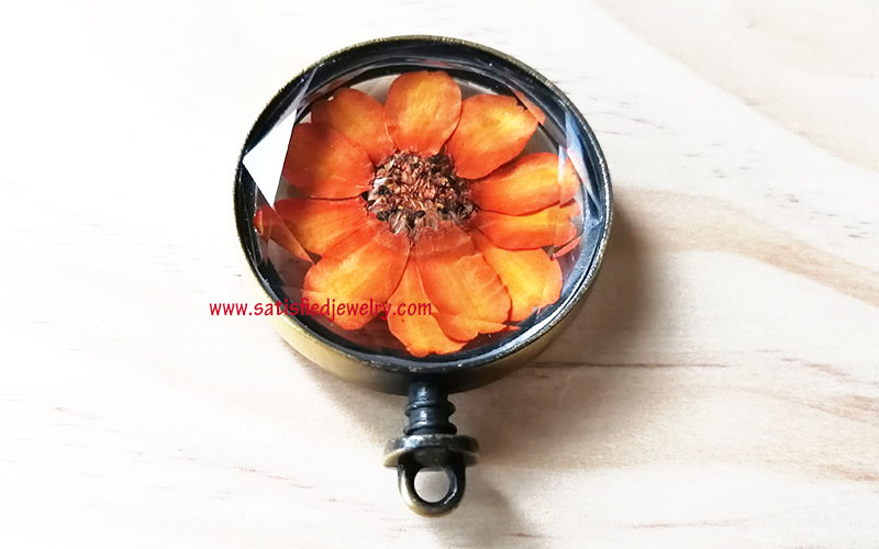 Material: Brass + glass + real flower Color: as show in the color card below Size: 52.2x39.9x12.2mm MOQ: 100pcs multi color Delivery time: one week