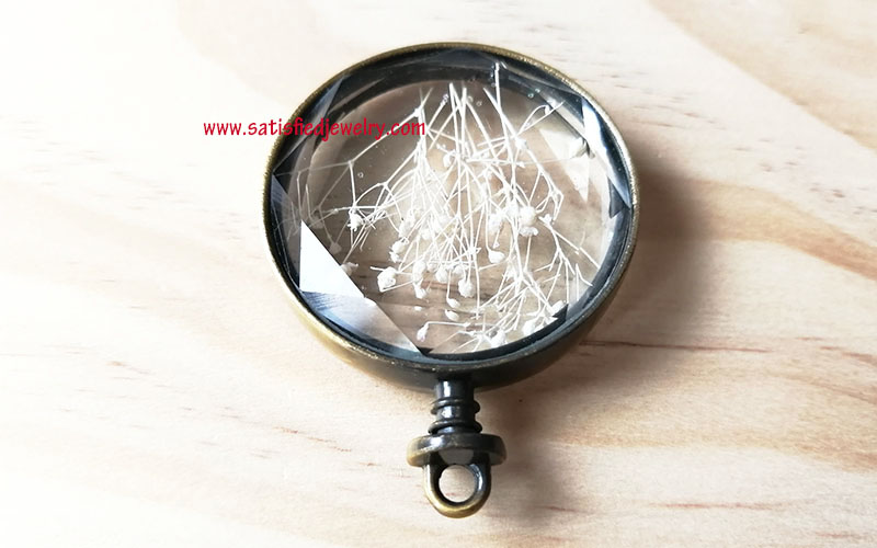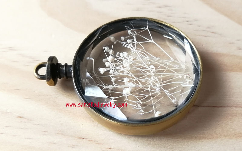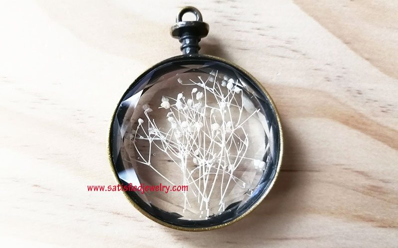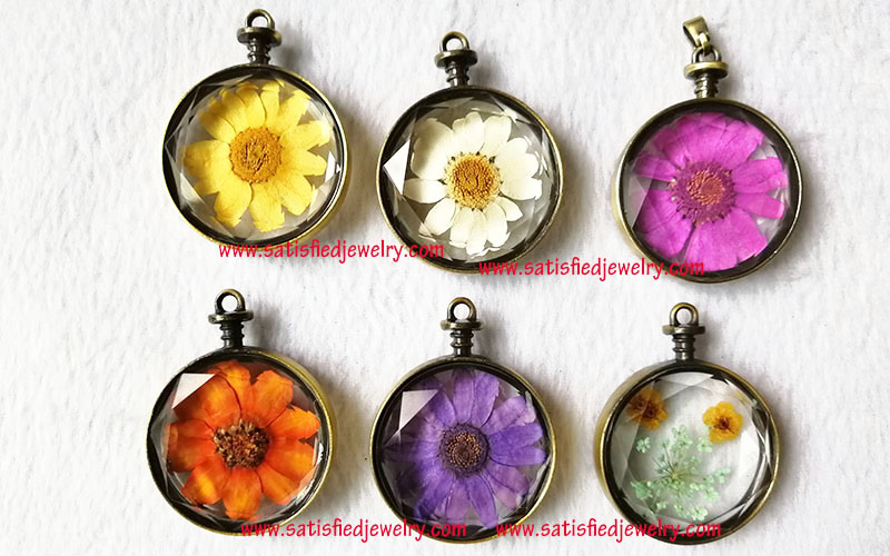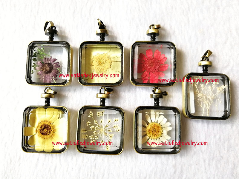 Material: Brass + glass + real flower Color: as show in the color card below Size: 52.2x39.9x12.2mm MOQ: 100pcs multi color Delivery time: one week