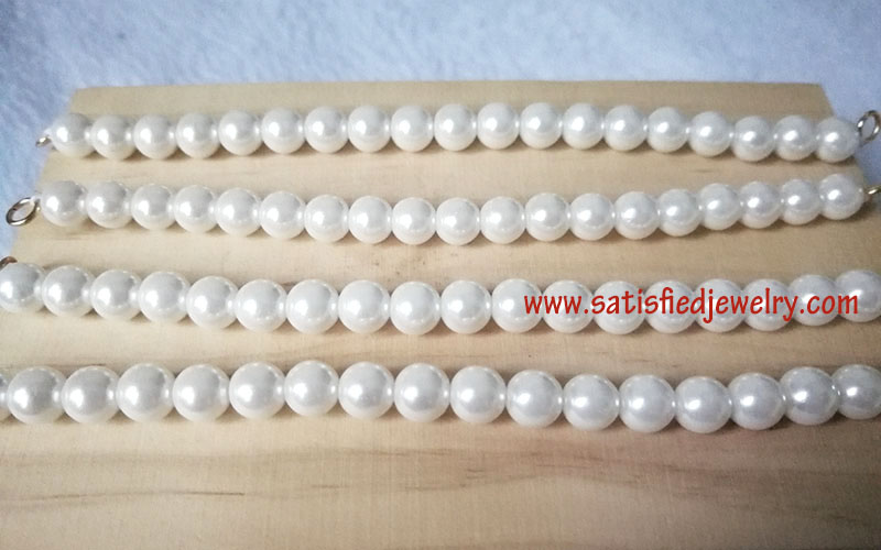 Material: 8mm Good quality glass pearl with 19pcs + closed stainless steel rings (6x1mm) Size: 8mm Good quality glass pearl beads Weight: 12.5g MOQ: 3000pcs Delivery time: one week