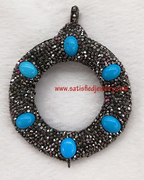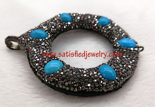 Material: Real leather with turquoise flat beads and crystal stone around Size: 76.5x51mm Flat turquoise size: 7x10mm Weight: 19.4g MOQ: 20PCS Delivery time: one week