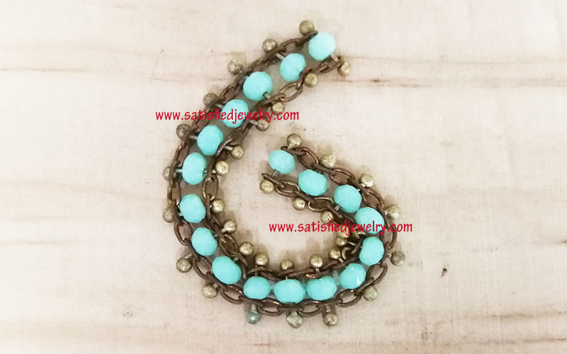 Material: Brass chain with glass beads Color: as show in the color card below Size: 2x2.5mm glass beads MOQ: 200meters/color Delivery time: one week