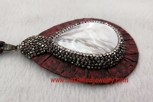 Material: Real leather with shell with crystal stone around Size: 70x48mm Shell size: 34x25mm Weight: 14.3g MOQ: 50PCS Delivery time: one week