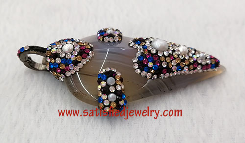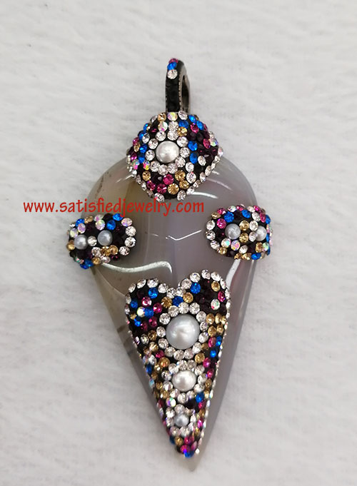Material: Real gemstone with crystal stone around Size: 62x33.5mm Weight: 18.9g MOQ: 20PCS Delivery time: one week