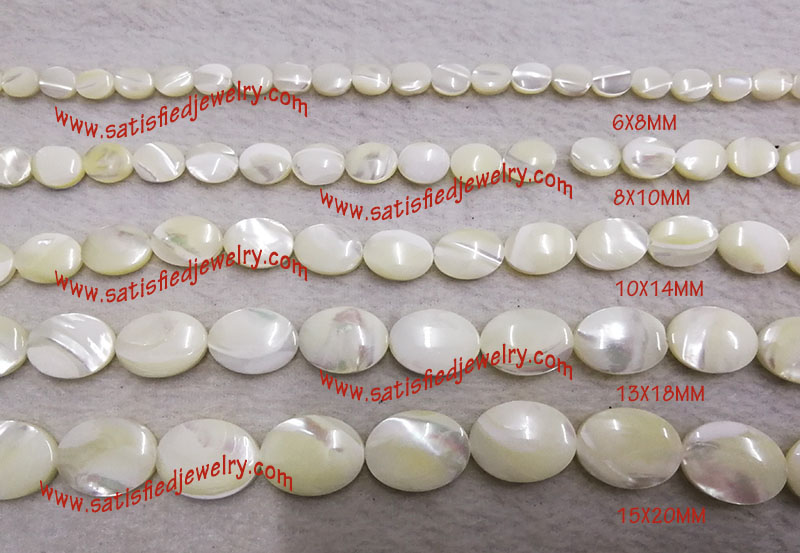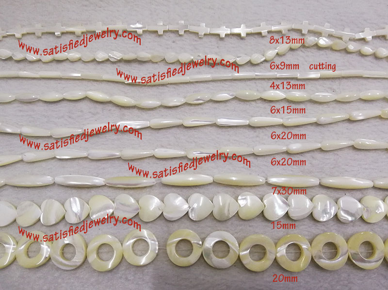 Material: Shell Color: white, yellow Size: 6x9mm MOQ: 50strs/color, one string with 44pcs Delivery time: one week