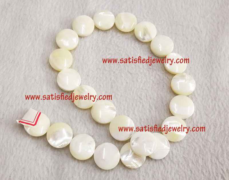 Material: Shell Color: white, yellow Size: 18mm MOQ: 50strs/color, one string with 22pcs Delivery time: one week