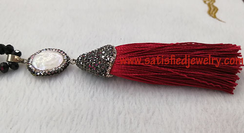 Material: Real shell beads with tassel and with crystal stone around shell beads with cyrstal beads Size: 21.5mm Tassel size: 80mm MOQ: 50PCS Delivery time: one week