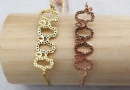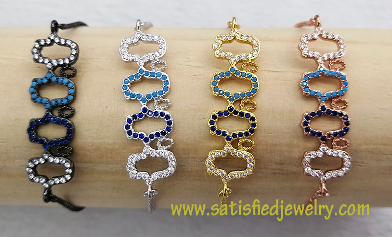 Material: Brass with real gold plated, with cubic zircon Color: Gold plated, Rose gold plated, Black color, Rhodium plated Size: 38x10mm Weight: 4.0g MOQ: 50PCS each color Delivery time: one week