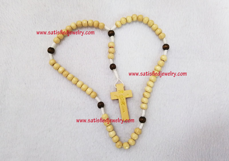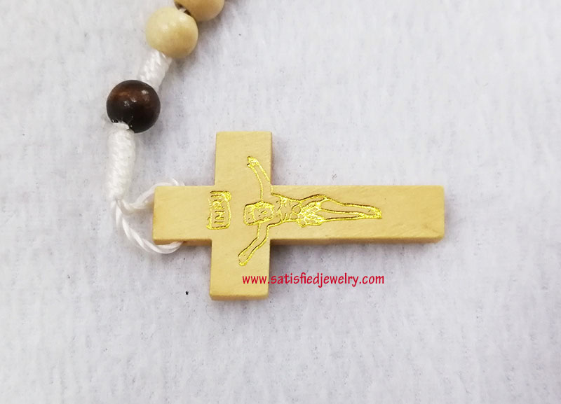 Material: Wood Size: 8mm wood beads, Wood cross size is 41.6x24x4.6mm MOQ: 2000pcs Delivery time: 10days