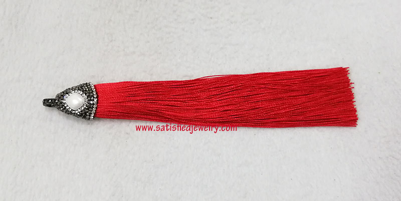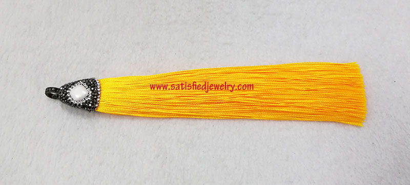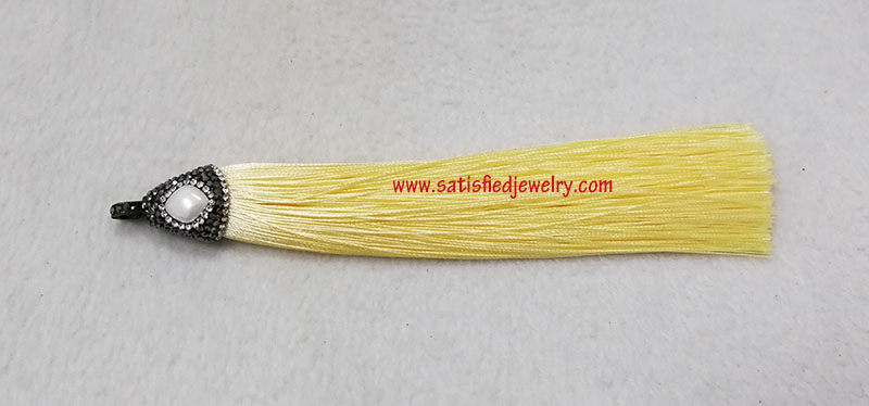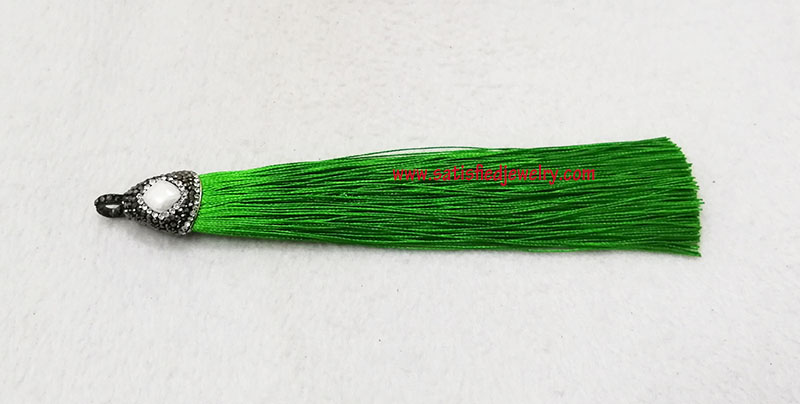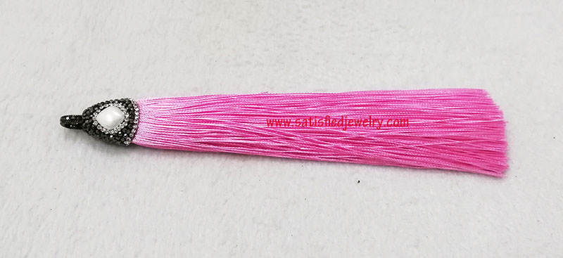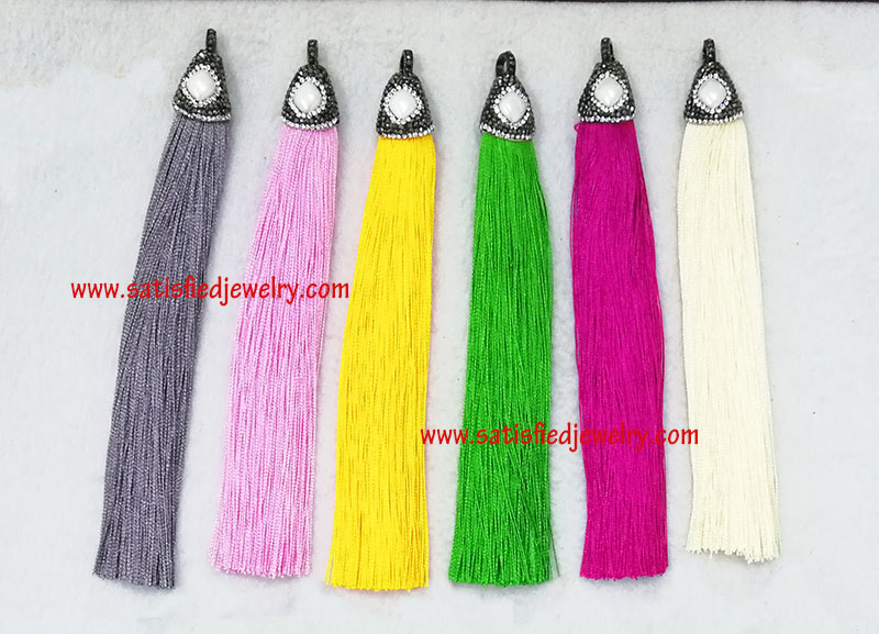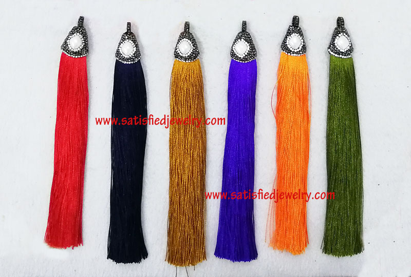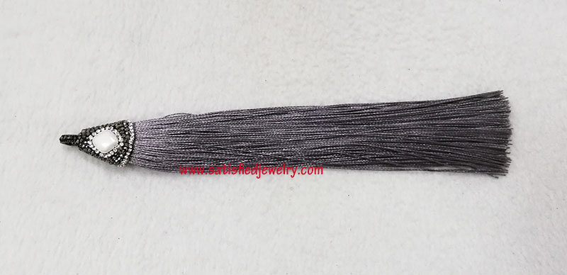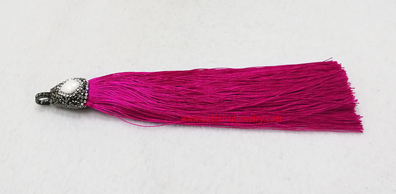 Material: Tassel with stones Size: total length is 190mm, stone part size is 33.5x20.5mm, tassel part size is 160mm. with 450pcs of small lines MOQ: 100pcs/color Delivery time: 10days