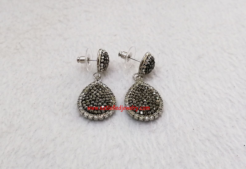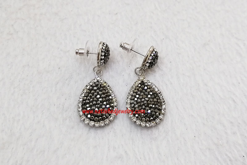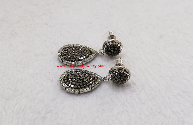 Material: brass + turquoise + stones Size: the pendant below size is 28x18.2x3.5mm with two sides same, the round stone part is 12mm MOQ: 100pairs/color Delivery time: one week