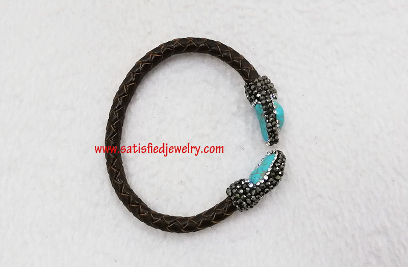 Material: turquoise + stones + leather Size: 15-16mm beads MOQ: 100pcs/color Delivery time: one week