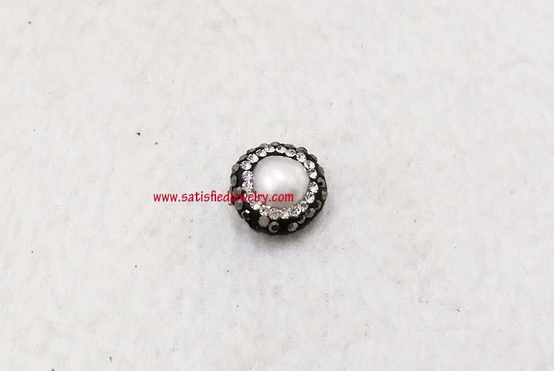 Material: Pearl + stones, two sides same Size: 14mm, 6.8mm depth MOQ: 100PCS/color Delivery time: one week