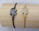 Material: Brass with real gold plated, with cubic zircon Color: Gold plated, Rose gold plated, Black color, Rhodium plated Size: 18.9x10.5mm Weight: 3.5g MOQ: 50PCS each color Delivery time: one week