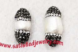 Material: Pearl + stones Size: 21-24mm length, 10mm width MOQ: 100PCS/color Delivery time: one week