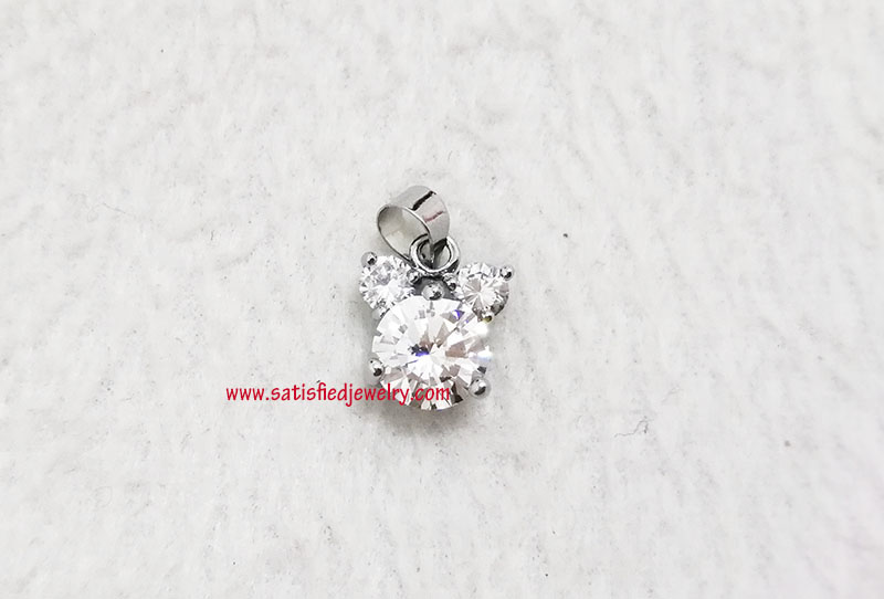 Material: Brass + Cubic Zircon Stone Color: Gold plated, Silver plated, Rhodium plated, Rose gold plated Size: Total size is 13x10.8mm, with 1pcs of 8mm cubic zircon round stone and 2pcs of 4mm cubic zircon round stone MOQ: 200pcs/color Delivery time: one week