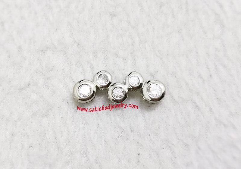 Material: Brass + Cubic Zircon Stone Color: Gold plated, Silver plated, Rhodium plated, Rose gold plated Size: Total size is 24x8.8mm, 5.2mm depth, with 5pcs of 3.5mm cubic zircon round stone MOQ: 200pcs/color Delivery time: one week