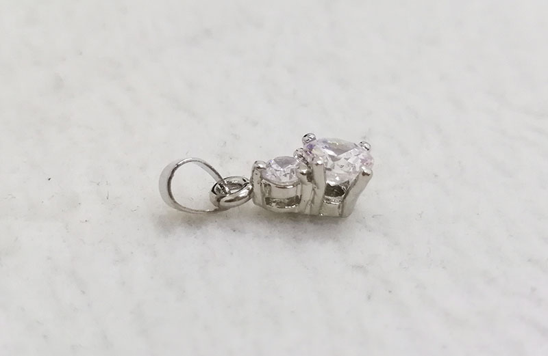 Material: Brass + Cubic Zircon Stone Color: Gold plated, Silver plated, Rhodium plated, Rose gold plated Size: Total size is 14.2x6.3mm, 5.7mm thickness, with 6mm cubic zircon round stone and 4mm cubic zircon round stone MOQ: 200pcs/color Delivery time: one week