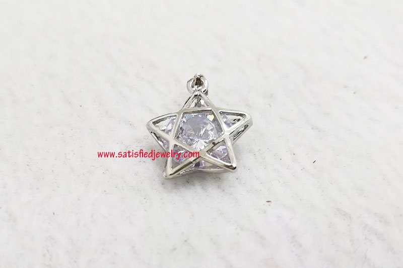 Material: Brass + Cubic Zircon Stone Color: Gold plated, Silver plated, Rhodium plated, Rose gold plated Size: Total size is 17.2x15.4mm, 7mm depth, with 10mm cubic zircon round stone MOQ: 200pcs/color Delivery time: one week