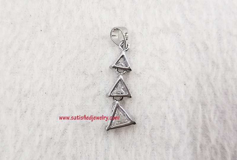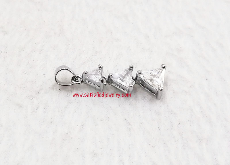 Material: Brass + Cubic Zircon Stone Color: Gold plated, Silver plated, Rhodium plated, Rose gold plated Size: with 3pcs of cubic zircon triangle stone sizes are 4mm, 5mm and 6mm MOQ: 200pcs/color Delivery time: one week