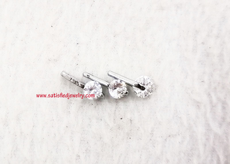 Material: Brass + Cubic Zircon Stone Color: Gold plated, Silver plated, Rhodium plated, Rose gold plated Size: Total size is 21.3x6.8mm, 4.3mm thickness, with 3pcs of 4.0mm cubic zircon round stone MOQ: 200pcs/color Delivery time: one week