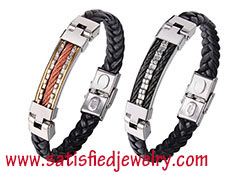 Material: Stainless steel + importing imitation leather Color: black / gold Size: length is 23cm MOQ: 100pcs/color Delivery time: one week