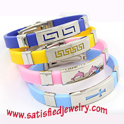 Material: Stainless steel + genuine silicone Color: many colors as show in the photo Size: length is 21cm, width is 10mm, the silicone belt size is 10x3mm, middle steel part size is 38x10x3.5mm MOQ: 100pcs/constellation Delivery time: one week