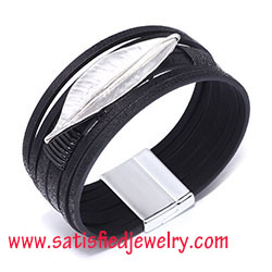 Material: Leather + alloy parts + Waxed rope Color: red / blue / black / brown / grey Size: length is 18.5cm, width is 2.5cm Weight: 25g MOQ: 120pcs/color Delivery time: one week