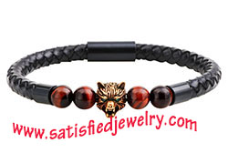 Material: Agate + leather + brass parts Color: black / gold / silver Size: 8mm agate beads Weight: 15g MOQ: 120pcs/color Delivery time: one week
