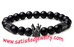Material: Agate matt + brass parts with cubic zircon Color: black Size: 8mm agate round beads, diameter is 6cm Weight: 21g MOQ: 120pcs/color Delivery time: one week