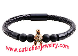 Material: leather + lava + tiger eye + agate matt Color: black / gold / silver Size: 8mm gemstone round beads Weight: 15g MOQ: 120pcs/color Delivery time: one week