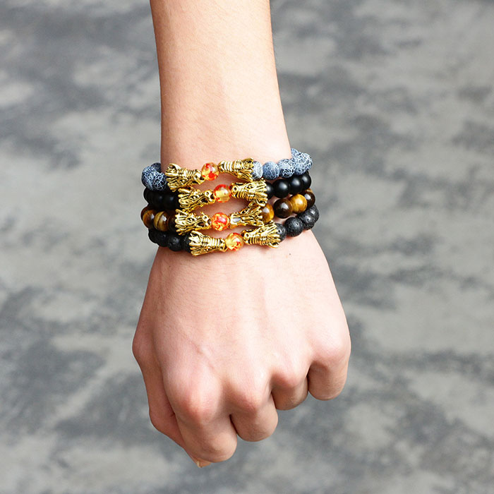 Material: agate matt + lava + snakewave agate + tiger eye + alloy parts Color: Black agate matt / tiger eye / lava / snakewave agate Size: diameter is 6cm Weight: 24g MOQ: 120pcs/color Delivery time: one week