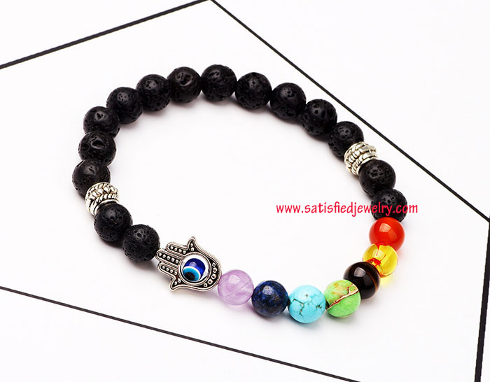Material: Lava + amethyst + lapid + tiger eye + jade +alloy parts Color: as show in the photo Size: 8mm gemstone round beads, diameter is 6cm Weight: 20g MOQ: 120pcs/color Delivery time: one week