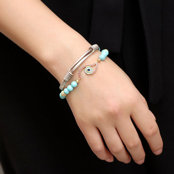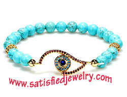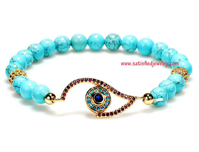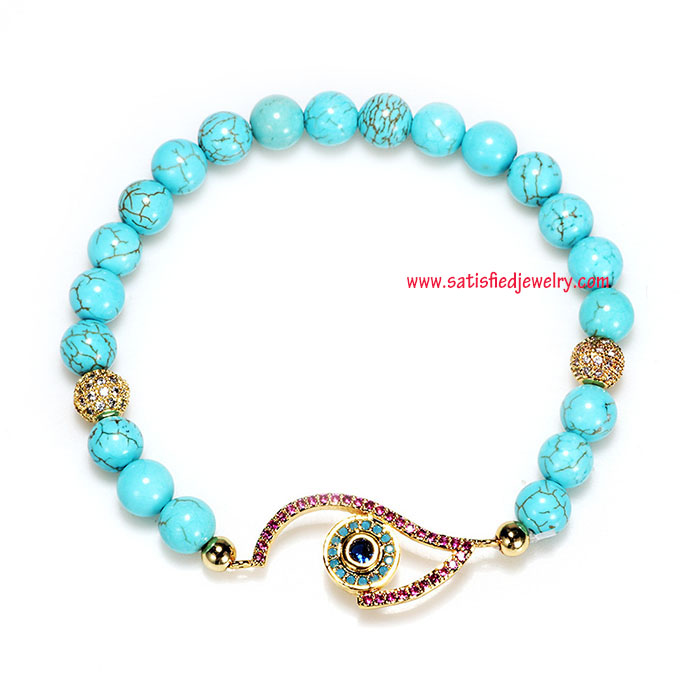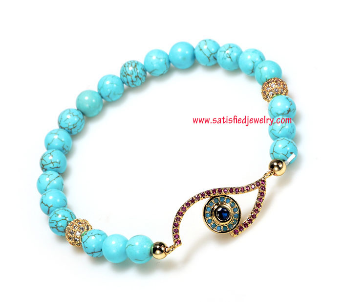 Material: turquoise + middle brass spacer with cubic zircon stone + 2pcs of brass ball with cubic zircon beads Color: one color as show in the photo Size: 6mm amethyst round beads Weight: 12g MOQ: 120pcs/color Delivery time: one week